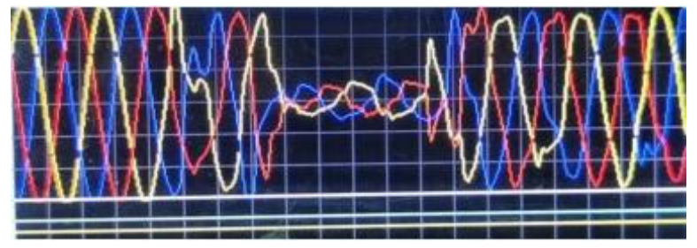 企業(yè)內(nèi)系統(tǒng)支路短路,母線殘壓一般低于額定電壓的 20%,大約在 0.1 秒左右恢復(fù),這是微機(jī)保護(hù)判斷加上開關(guān)開斷的時(shí)間,母線電壓發(fā)生的暫降現(xiàn)象,企業(yè)供電系統(tǒng)稱之為“晃電”,晃電實(shí)錄的電壓波形見圖一。